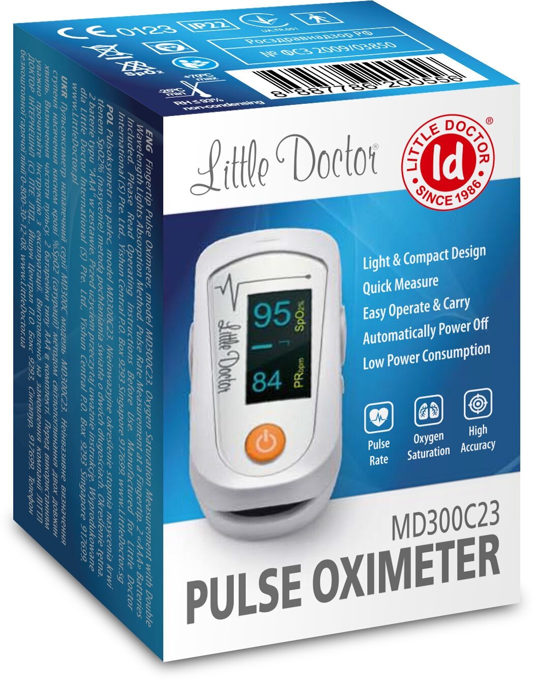 Лучшие цены. Пульсоксиметр, напалечный, Little Doctor MD300 C23 предназначен для непрерывного неинвазивного измерения степени насыщения кислородом гемоглобина артериальной крови (сатурации) и частоты пульса. Сатурация (насыщение) кислородом - процентное отношение количества связанного с кислородом гемоглобина (HbO2) к общему количеству в крови гемоглобина (Hb). Нормами сатурации у здорового человека признаны показания от 95 до 98 %. Следует учесть, что показания сатурации изменяются в течении суток. Магазины в вашем городе.