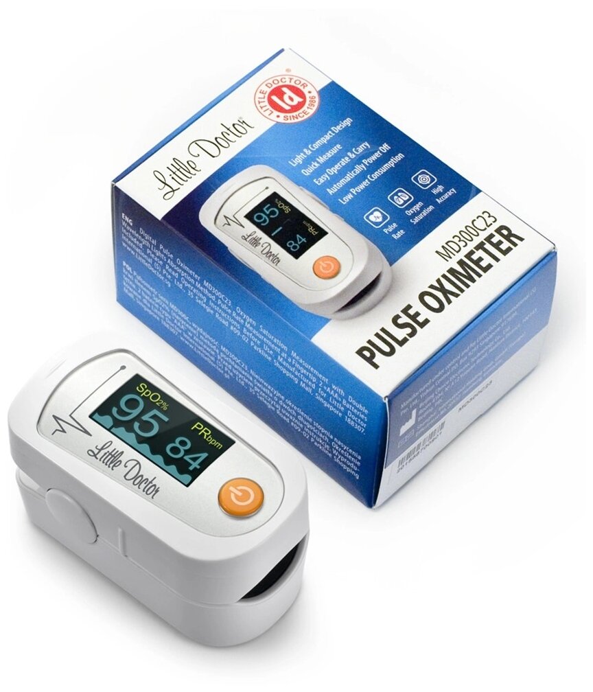 Пульсоксиметр на палец Little Doctor MD300C23 медицинский, измерение пульса и уровня насыщения крови кислородом (сатурации), регулировка яркости