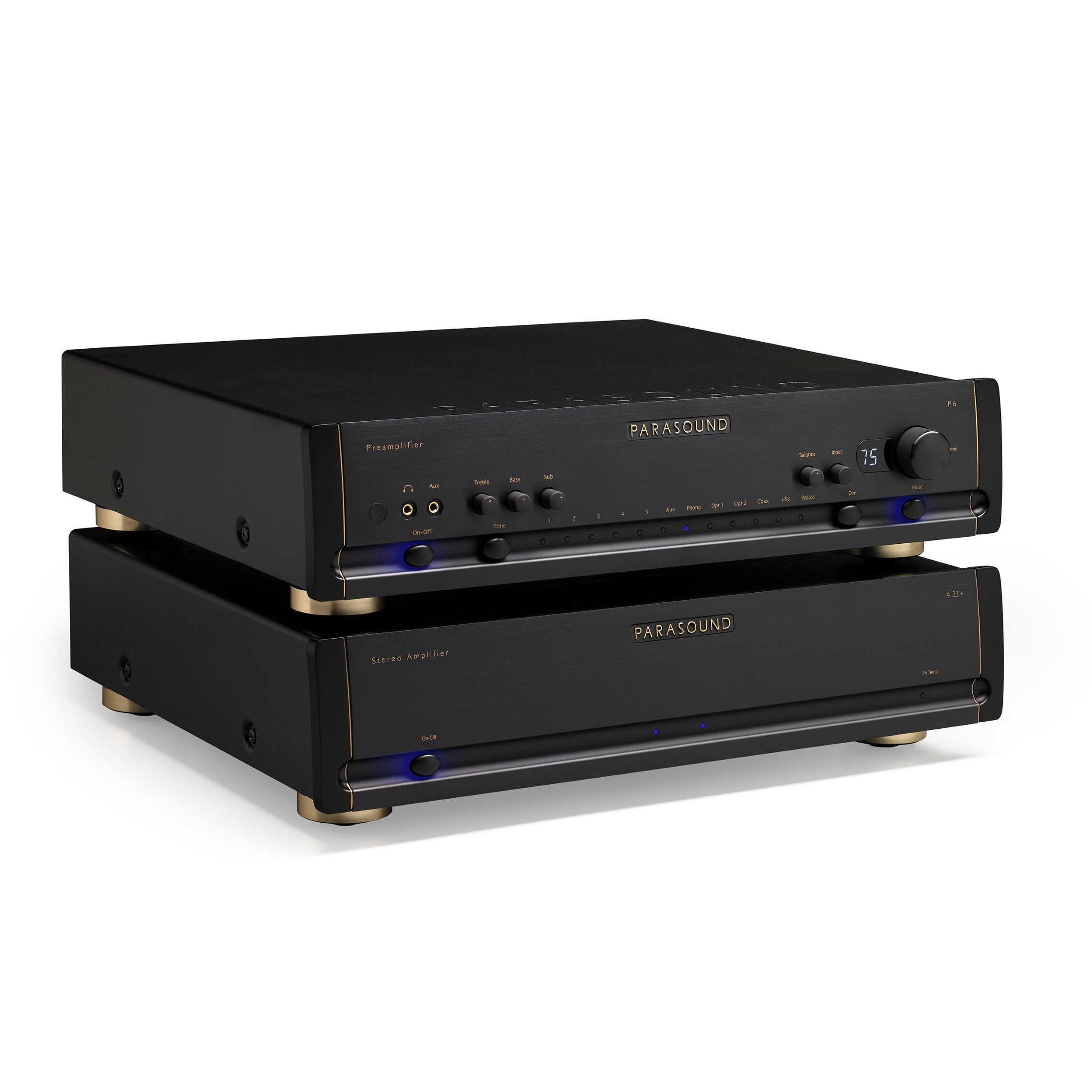 Лучшие цены. Parasound A23+ black - внешний усилитель сигнала, поступающего от предварительного усилителя. Конструкция оборудована двумя каналами усиления. Максимальная мощность, выделяемая на один канал - 500 Вт. Уровень шума в сигнале на выходе равен 116 дБ. Коэффициент гармонических искажений – 0.03% при стандартном уровне использования, и 0.06% на максимальном уровне мощности. Требуемая для максимального уровня работы мощность достигает значения в 800 Вт. Магазины в вашем городе.