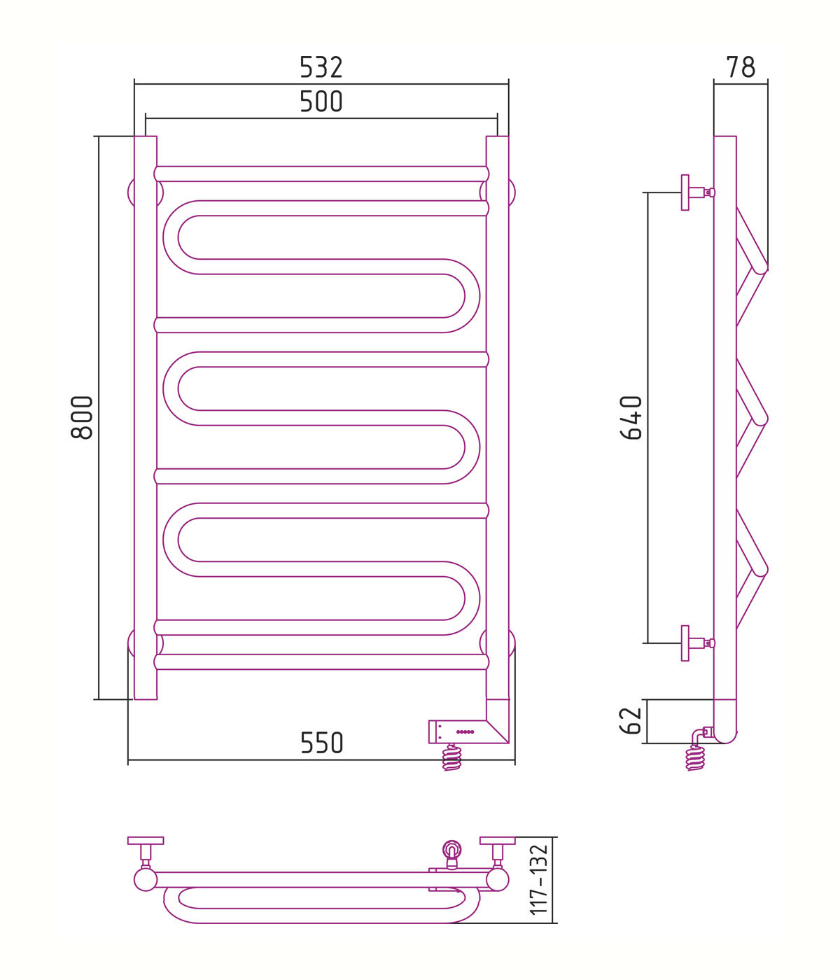Электрический полотенцесушитель Сунержа Элегия 2.0 800x500 ТЭН Пр. арт. 00-5219-8050