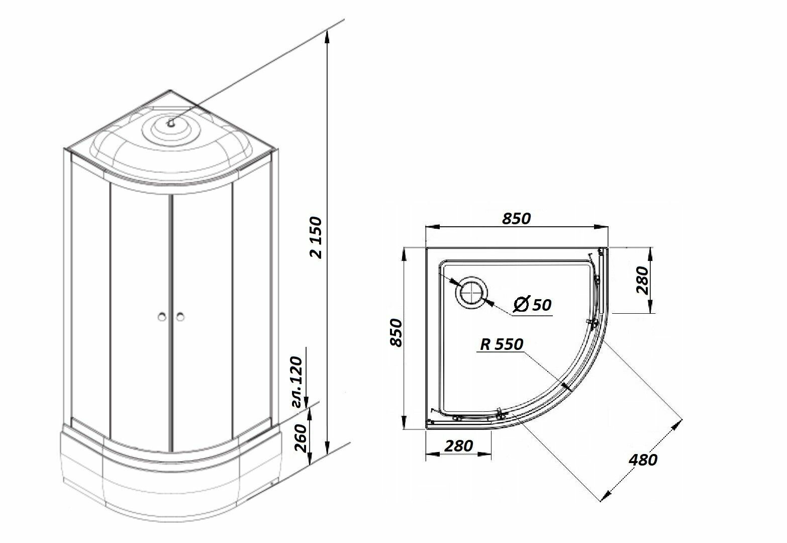 | Габариты | 900х900х2085 мм |