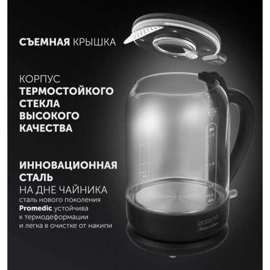 Чайник POLARIS PWK1753CGL черный Чайник стекло