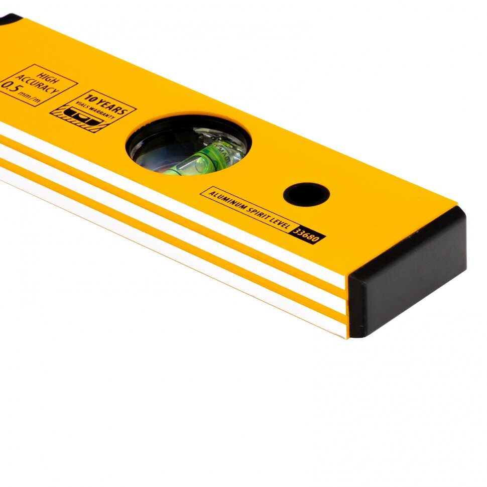 Лучшие цены. Алюминиевый фрезерованный уровень Denzel 33680 длиной 400 мм, с 3 глазками, используется для контроля расположения вертикальных и горизонтальных плоскостей. Благодаря инструменту риск погрешности да снижается, что позволяет получить качественный результат. Примечание: для определения отклонения вертикали 90 градусов необходимо использовать пузырьковую ампулу только в верхнем положении уровня. Только базовая поверхность является рабочей (противоположная ампуле 180 градусов). Магазины в вашем городе.