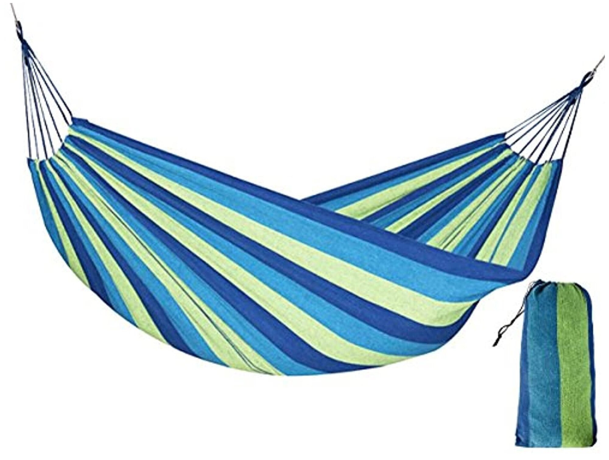 Гамаки Гамак полотняный Ham-11 с чехлом для хранения и переноски, р-р 200х120 см., сине-зеленый