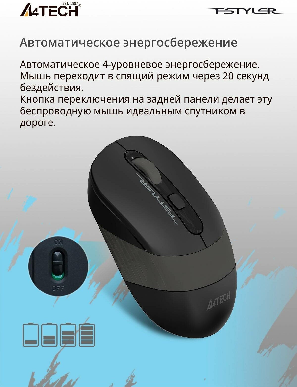 Беспроводная мышь A4Tech Fstyler FG10S, черный/серый