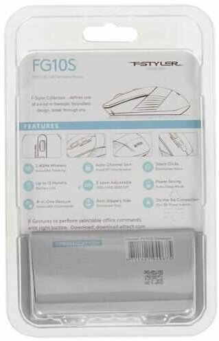 Мышь A4 Fstyler Fg10s белый/серый оптическая (2000dpi) silent беспроводная USB (4but) Fg10s .
