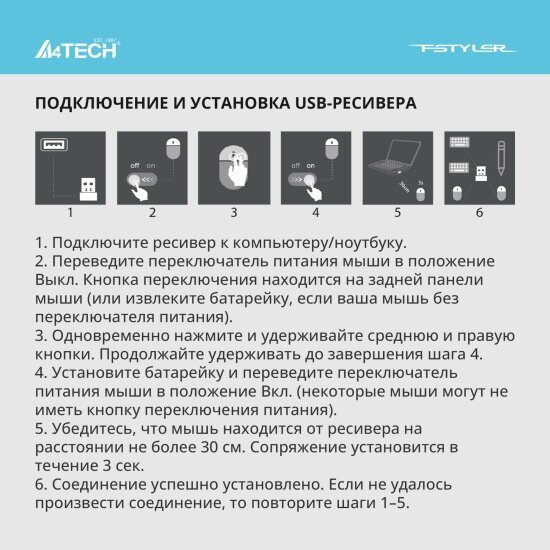 Комплект 5 штук, Мышь компьютерная A4Tech Fstyler(FG10S GREY)черн/сер/2000dpi/беспроводн/4кн 12 159 ₽ Подробнее
