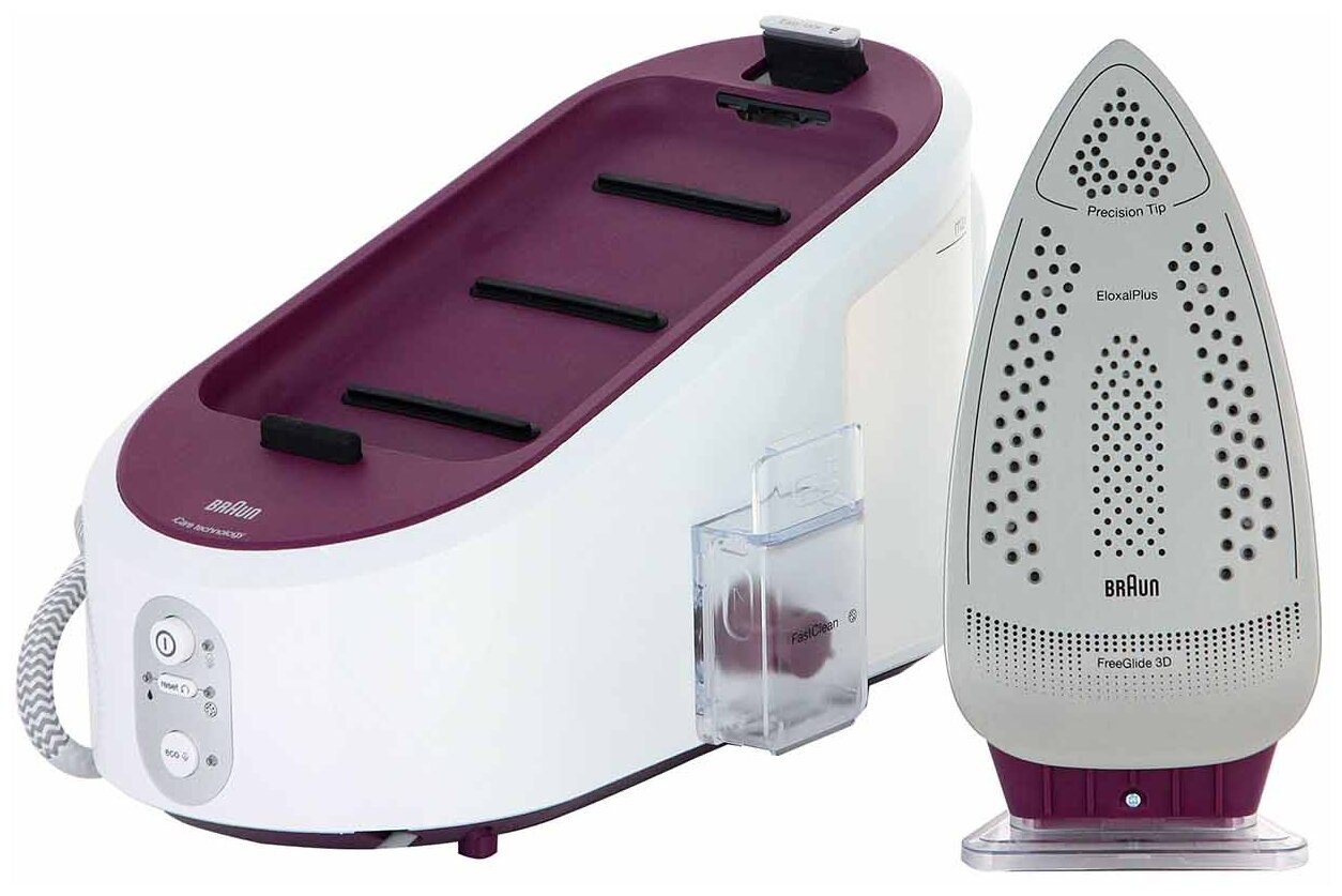 Лучшие цены. Парогенератор Braun IS 5155 2400 Вт сиреневый/белый Мощность: 2400 Вт Давление: 7,5 бар Непрерывный пар: 125 г/мин Паровой удар: 480 г/мин Емкость резервуара для воды: 2 л Технология FreeGlide 3D Уникальный изгиб лапки и закругленные края дают возможность маневрировать на ткани в диапазоне 360°. Гладить в обратном направлении вокруг любых препятствий, таких как пуговицы, карманы или молнии. Магазины в вашем городе.