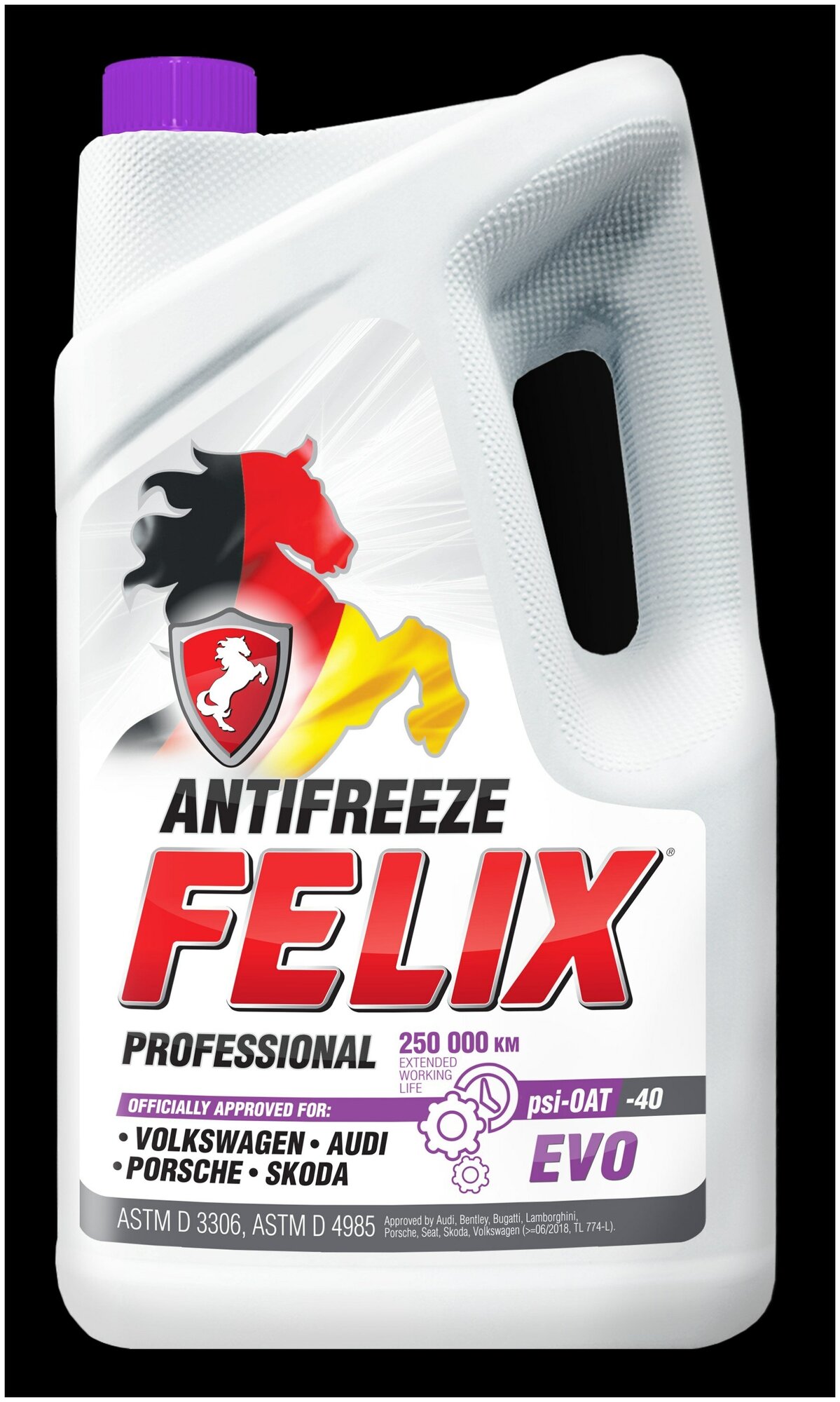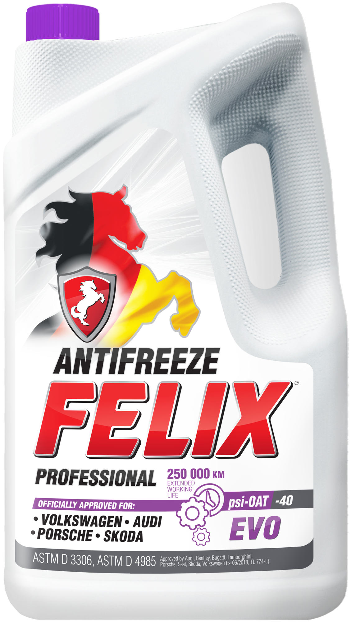 Лучшие цены. Антифриз FELIX® EVO представляет собой охлаждающую жидкость премиум-класса, изготовленную из высококачественного этиленгликоля и суперконцентрата GLYSANTIN ® G165 SC pink (компания BASF, Германия). Имеет официальное одобрение и рекомендован к заливке в автомобили VOLKSWAGEN, SKODA, AUDI, BENTLEY, BUGATTI, LAMBORGHINI, PORSCHE, SEAT. Преимущества: - Официальное одобрение Audi, Bentley, Bugatti, Lamborghini, Porsche, Seat, Skoda, Volkswagen (06/2018, TL 774-L). Магазины в вашем городе.