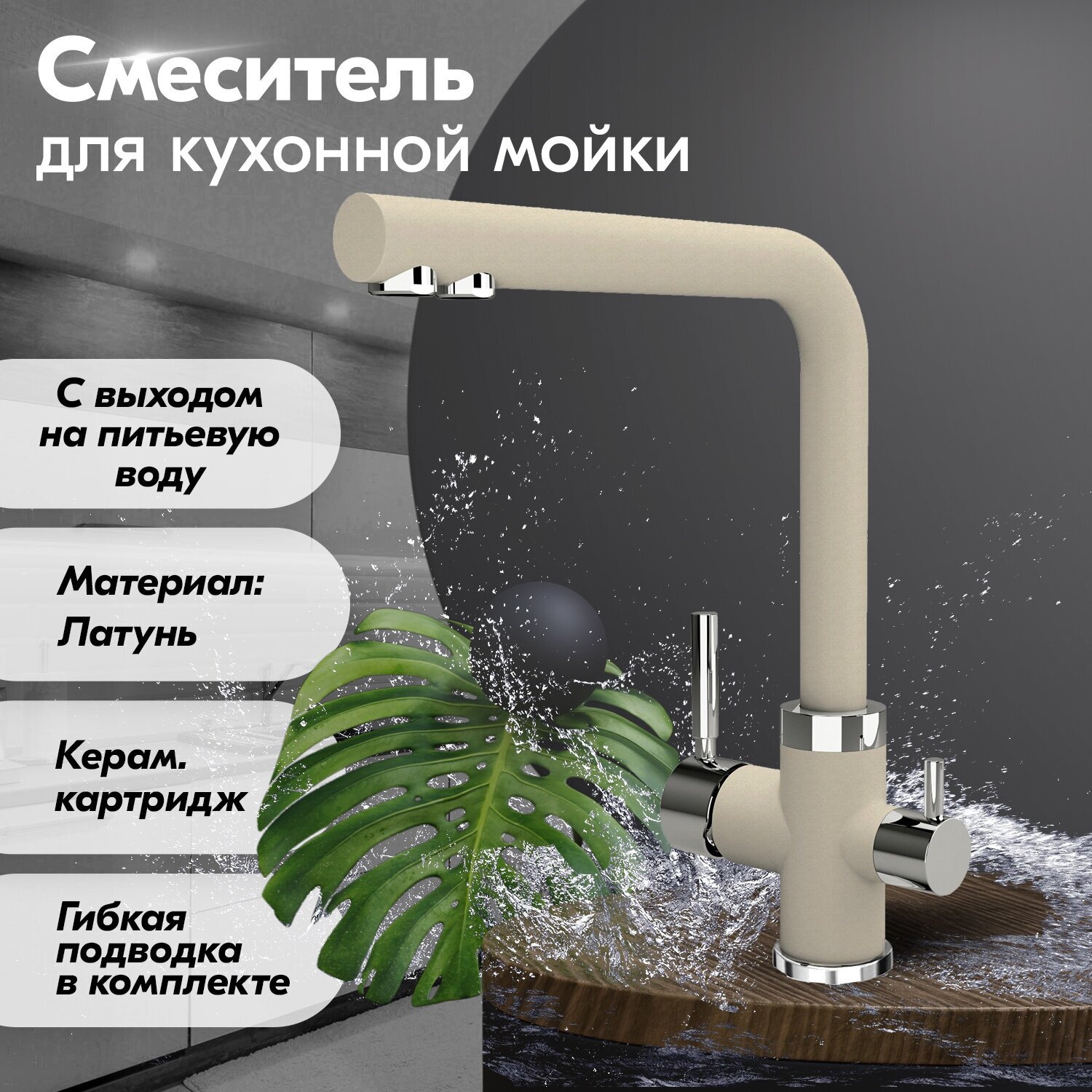 Смеситель для кухни с подключением к фильтру FLORENTINA Арес FL (333.19H.2123.104), бежевый 12 070 ₽ Подробнее