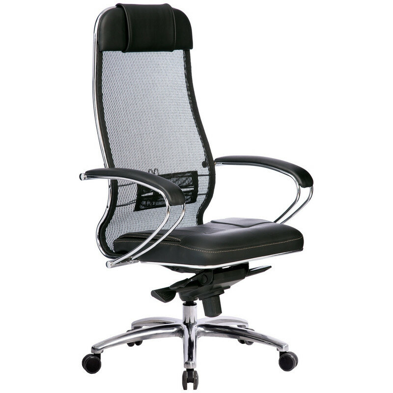 Кресло руководителя Метта "Samurai" SL-1.03/SL-1.04, сетка/кожа черная, механизм качания