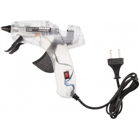 Пистолет клеевой Rexant, 60 Вт, O11 мм, Прозрачный корпус, с кнопкой, блистер 12-0107 .