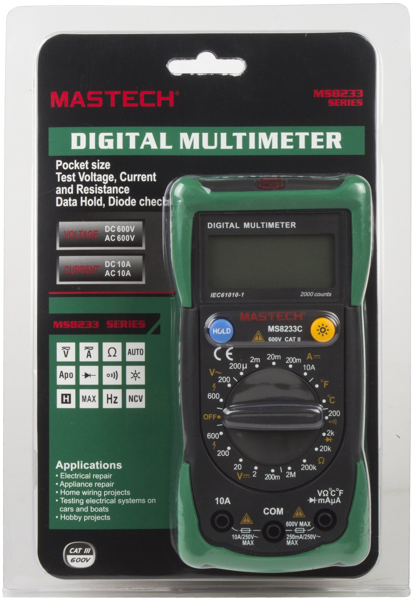 Лучшие цены. Мульти́метр — электроизмерительный прибор, который включает в себя несколько функций и набор измеряемых параметров. Все приборы серии MS8233 измеряют постоянное и переменное напряжение, а также постоянный ток, сопротивление в цепи и даже температуру. С помощью данного прибора можно проводить тестирование диодов и осуществлять прозвонку целостности цепи. Также мультиметр MS8233C оборудован специальным датчиком, с помощью которого вы бесконтактно сможете определить есть ли напряжение на участке, например в. Магазины в вашем городе.