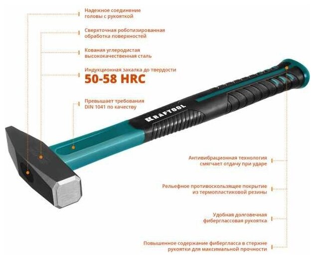 KRAFTOOL Fiberglass 500 г молоток слесарный с фиберглассовой рукояткой