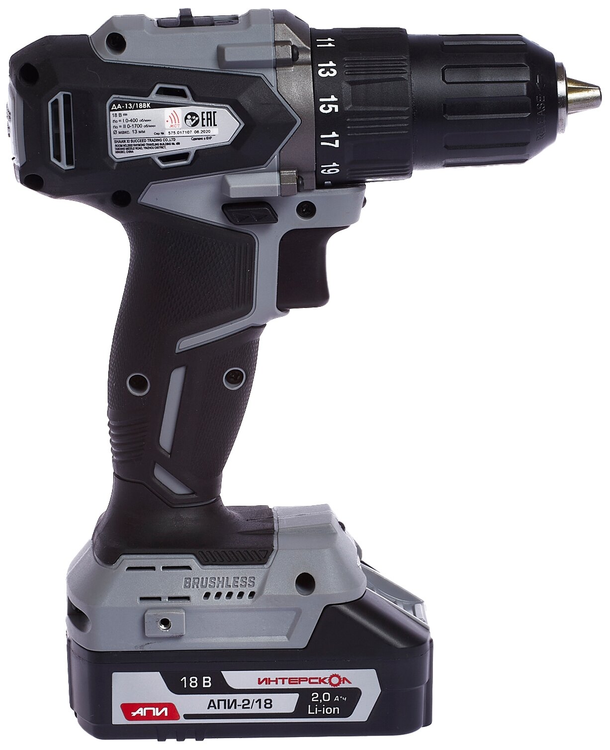 Бесщеточная аккумуляторная дрель-шуруповерт ИНТЕРСКОЛ ДА-13/18ВК 575.0.0.70, кейс, АПИ, без АКБ и ЗУ