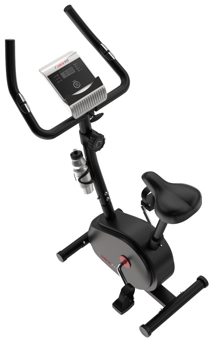 Лучшие цены. Магнитный велотренажер UNIXFIT BL-300 изготовлен в соответствии с международными стандартами качества и безопасности. Маховик весом 5 кг и 8 уровней регулировки нагрузки позволяют подобрать оптимальный режим тренировки. Интуитивно понятная панель управления оснащена LCD дисплеем и подставкой для книги/планшета. Эргономичное сидение, и ремни педалей с регулировкой сделают тренировку наиболее комфортной. Спортивная бутылка для воды поставляется в комплекте. Магазины в вашем городе.
