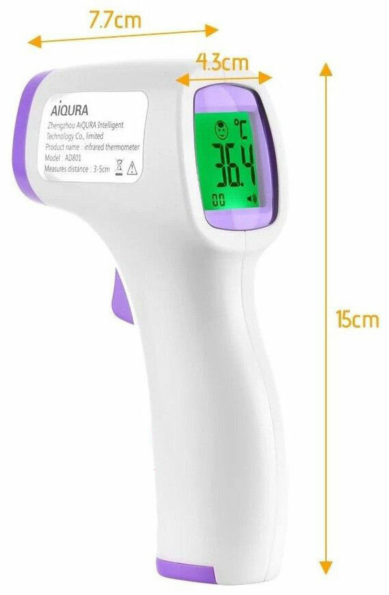 Лучшие цены. AiQURA AD801 — бесконтактный термометр для измерения температуры тела детей и взрослых. Измерение температуры происходит примерно за 1 секунду. Погрешность измерения составляет всего 0.2°C. Измерение температуры производится на расстоянии 3-5 сантиметров. Устройство оснащено встроенной памятью, в которой сохраняются результаты последних 16 измерений. Изменяемая подсветка дисплея наглядно продемонстрирует отклонение температуры от нормальной. Возможность установки значения температуры тревоги. Магазины в вашем городе.