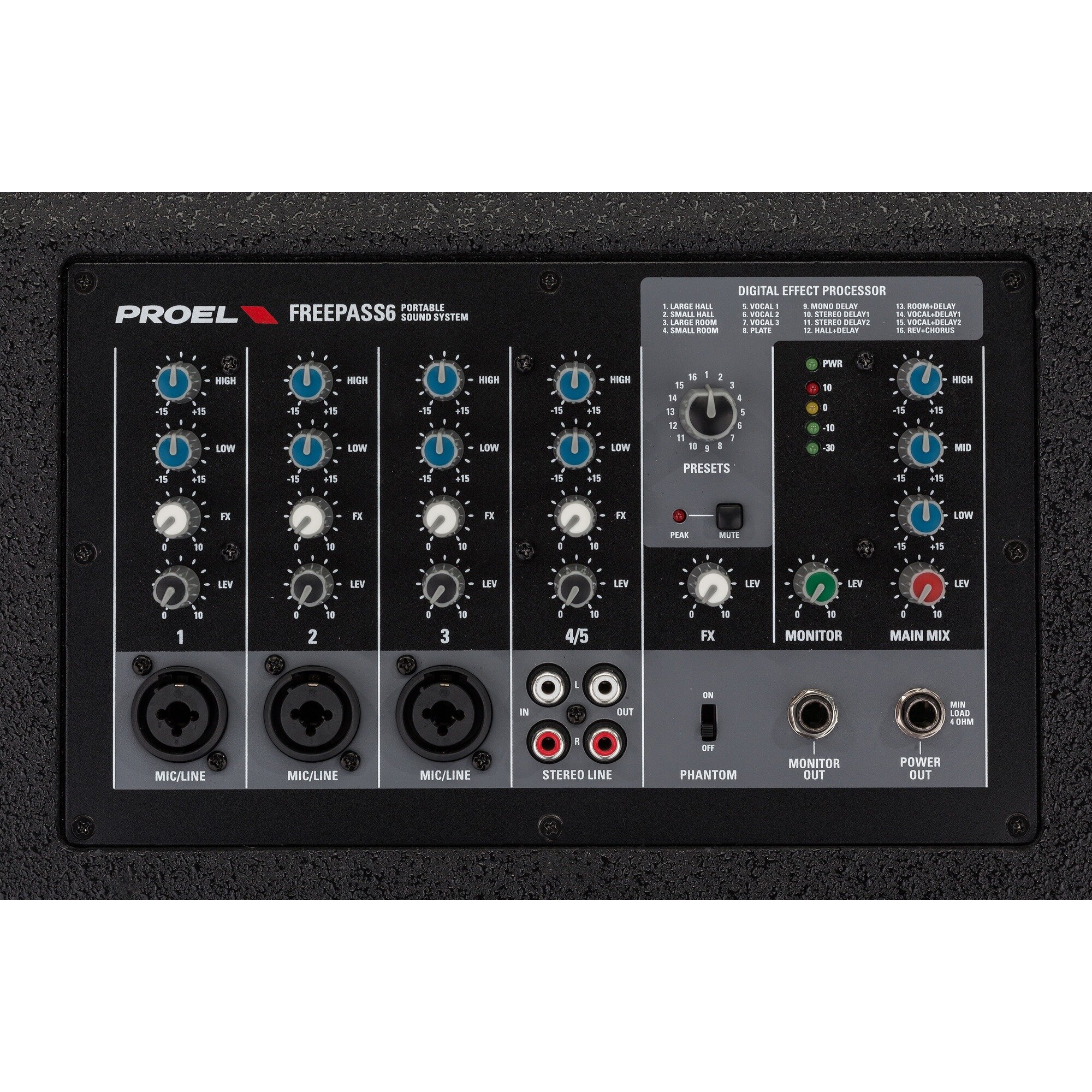 Лучшие цены. PROEL FREEPASS6 — ультракомпактная комбинированная активная звуковая система «все-в-одном» с усилителем и 5-канальным микшером. Двухполосная акустическая система с 1" неодимовым твитером и 6,5" НЧ-динамиком обеспечивает точную звукопередачу. Магазины в вашем городе.