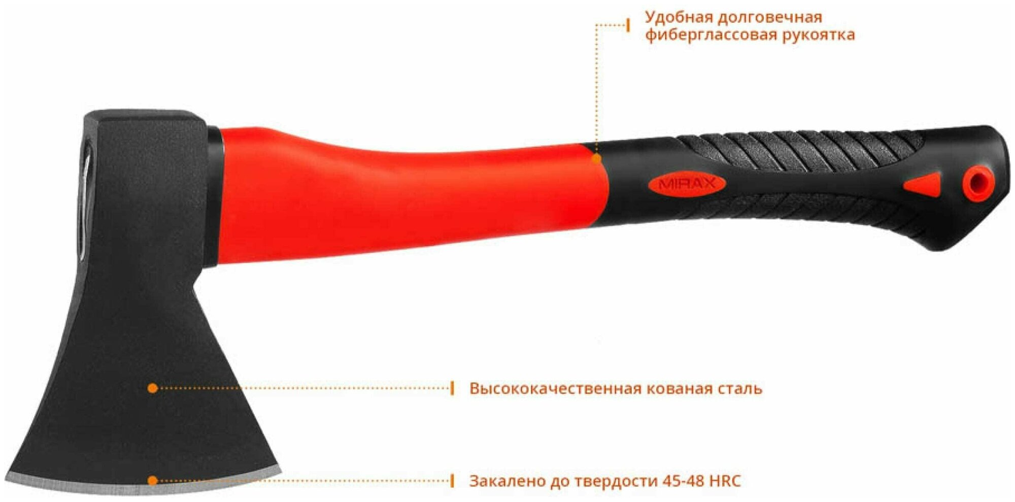 Топор кованый MIRAX, 600/800 г, с фиберглассовой рукояткой, 360 мм(20601-06_z02)