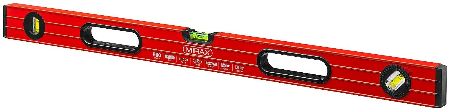 MIRAX Уровень коробчатый усиленный, 80 см. фрезер. поверх., утолщ. профиль, 3 противоуд.ампулы MIRAX