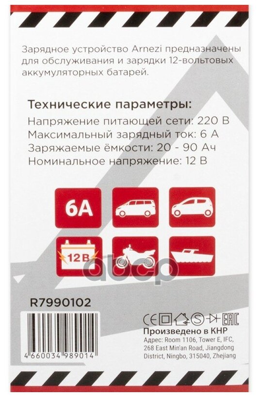 Зарядное Устройство (12В, 6А, Акб 20-90Ач) Arnezi ARNEZI арт. R7990102