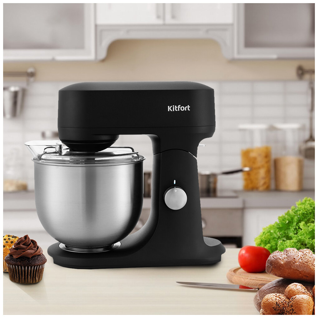 Цельнометаллический планетарный миксер Kitfort КТ-3028-1, чёрный (+подарок)