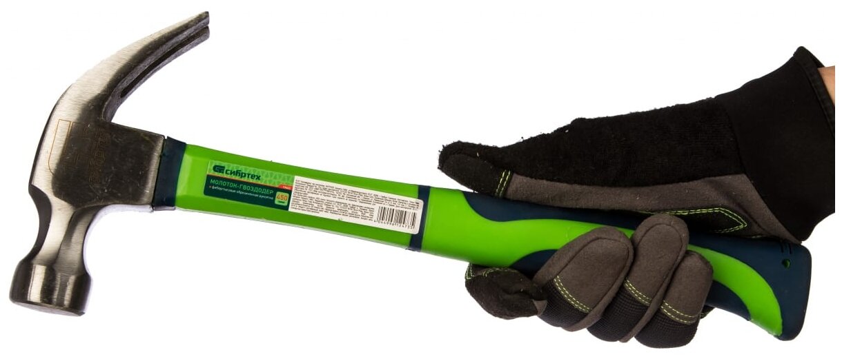 Молоток Сибртех Молоток-гвоздодер,450г, фибергласовая обрезиненная рукоятка// Сибртех 10442 .