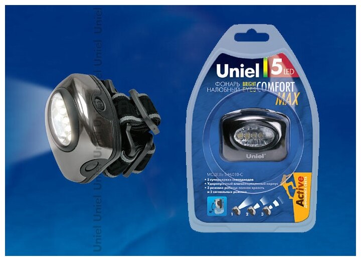 Фонарь Uniel Налобный S-hl010-c Стандарт 5ХLED 3ХААА Алюмин Корп Кламшел Uniel 03211 .