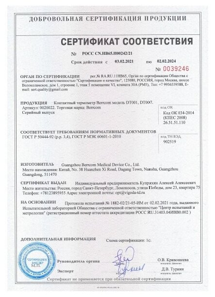 Медицинский термометр Электронный термометр Berrcom DT007 белый