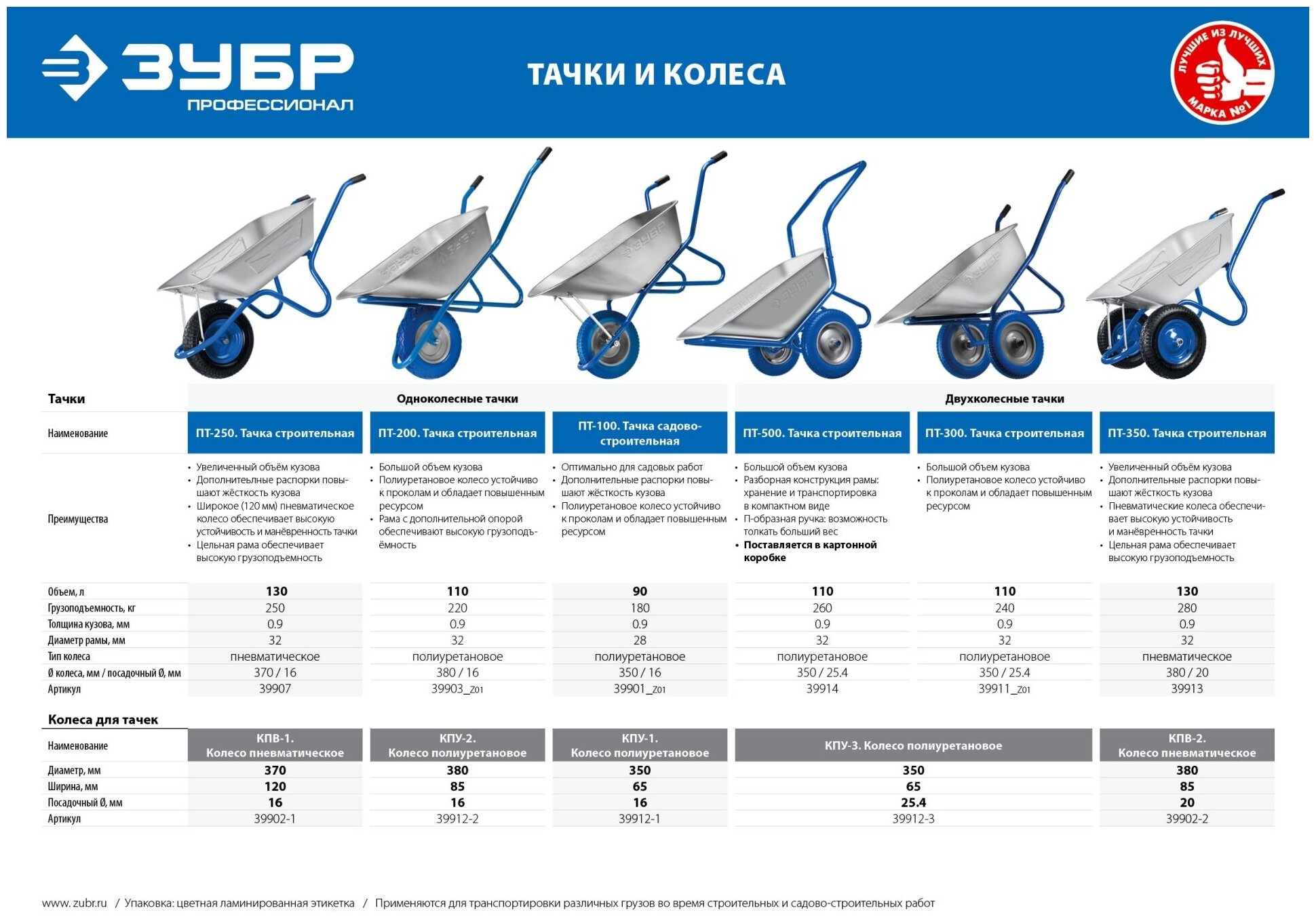 Лучшие цены. Строительная тачка ЗУБР ПТ-350 двухколесная, усиленная, с цельной рамой. Отличается прочной конструкцией, большой грузоподъемностью, хорошей маневренностью и долговечностью. Модель оснащена стальными подшипниками. Магазины в вашем городе.
