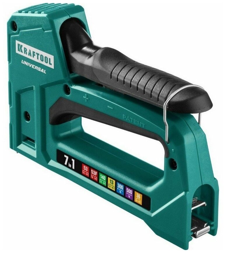 Степлер для скоб Universal 7-в-1: 53(6-14мм)/53F(10-14мм)/140(10-14мм)/13(6-14мм)/36(10-14мм)/300(16мм)/500(16мм), скобы в компл, KRAFTOOL 31524