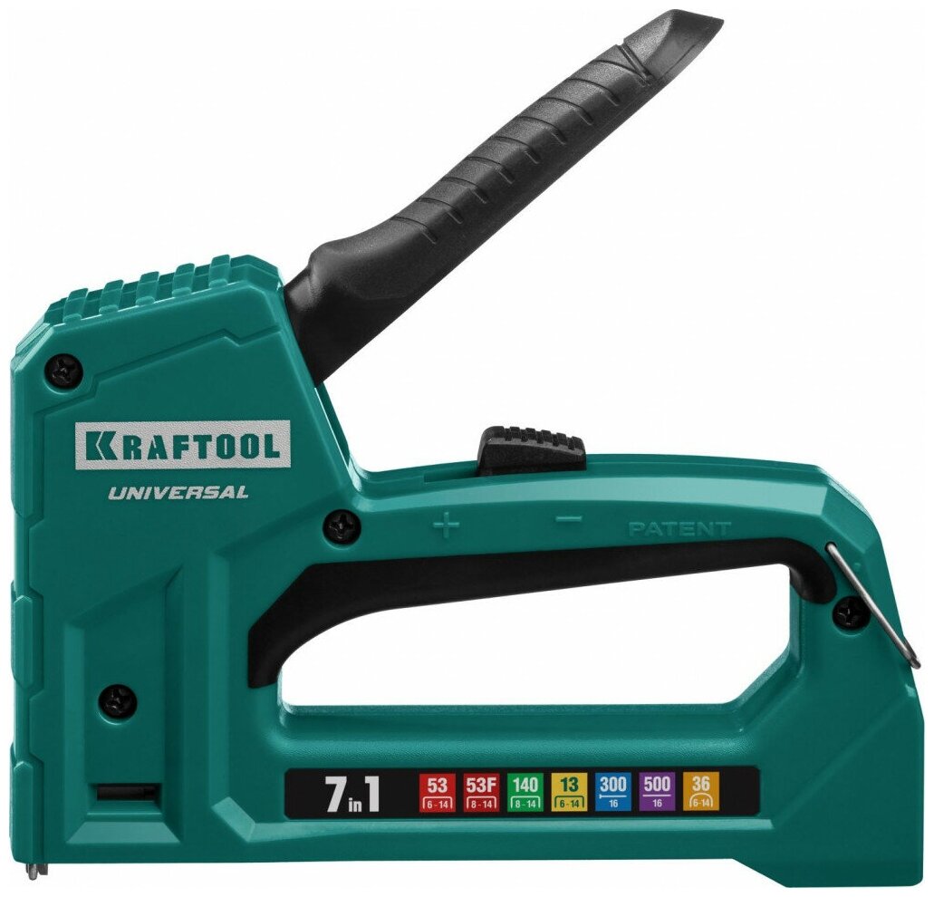 KRAFTOOL Universal, 7-в-1: 53 (A/10/JT21) 23GA (6 - 14 мм)/140 (G/11/57) 20GA (8 - 14 мм)/13/53F/36/500, универсальный легкий степлер (31524)