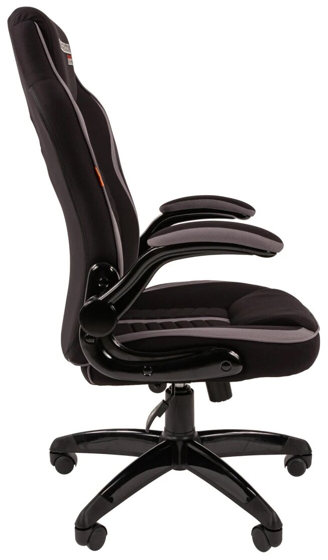 Игровое кресло Chairman game 19 чёрное/серое (ткань полиэстер, пластик, газпатрон 3 кл, ролики, механизм качания)