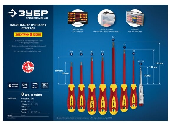 ЗУБР 8 предм., Набор диэлектрических отверток, Профессионал (25268)