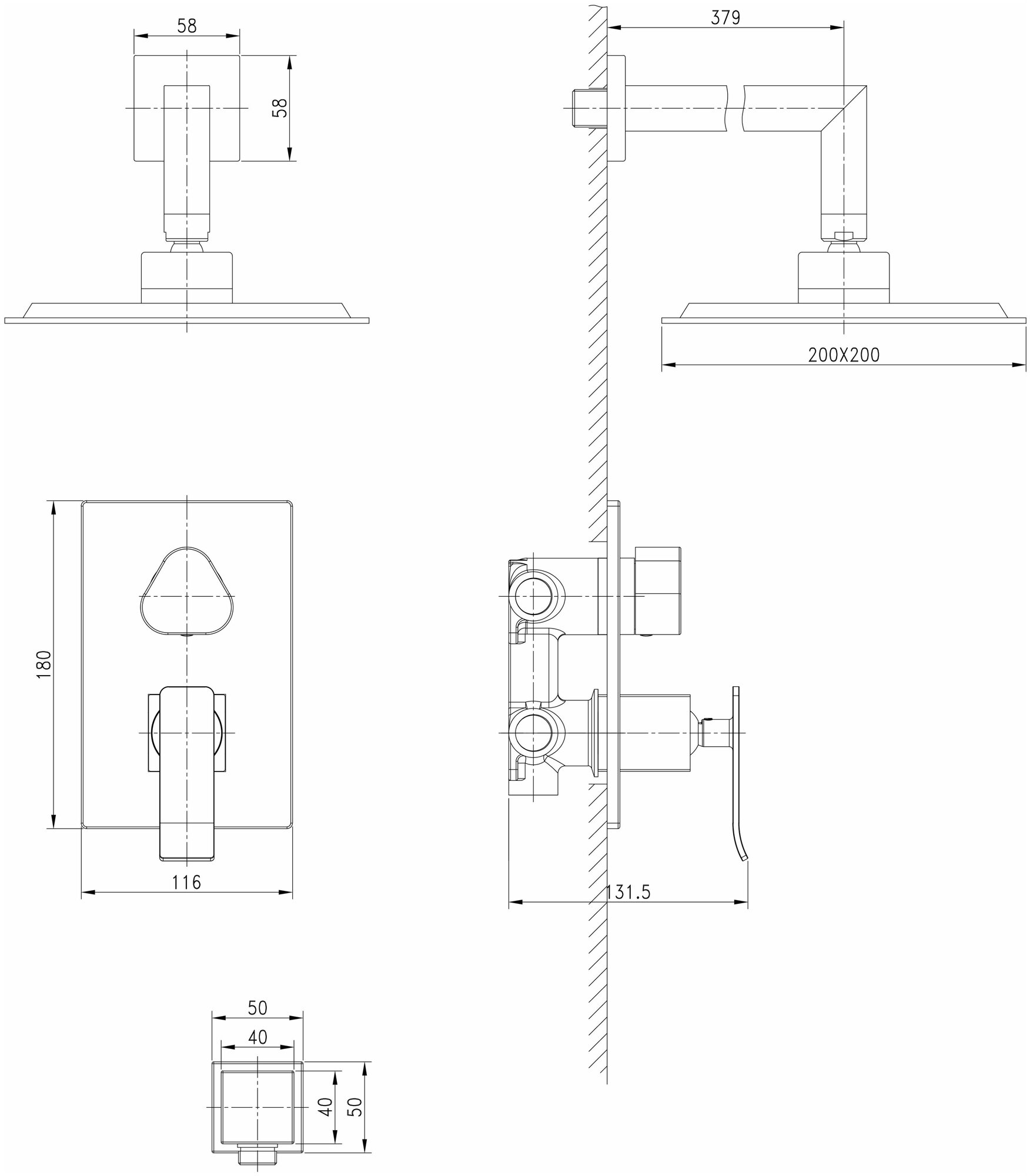 | Комплектация | ручной душ (душевая лейка) / верхний душ (тропический) / смеситель / душевой шланг / крепление ручного душа / настенный кронштейн |