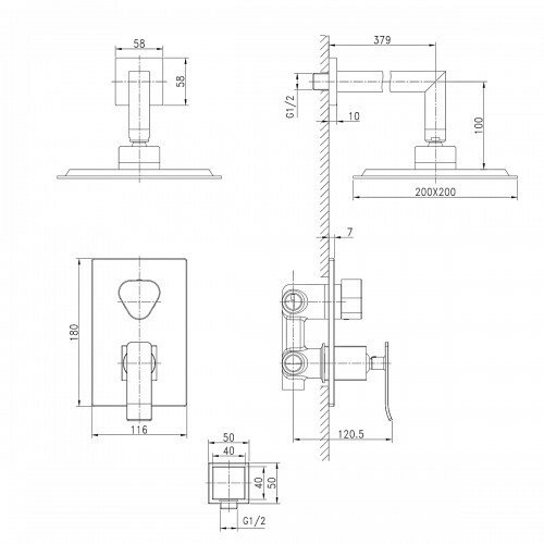 | Комплектация | ручной душ (душевая лейка) / верхний душ (тропический) / смеситель / душевой шланг / крепление ручного душа / настенный кронштейн |