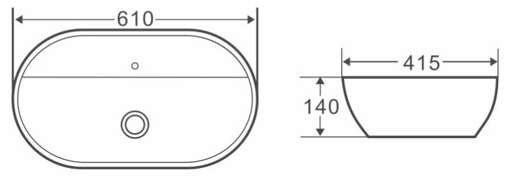 Раковина накладная BelBagno (610х415х140) овальная, с отверстием под смеситель, белая BB1346