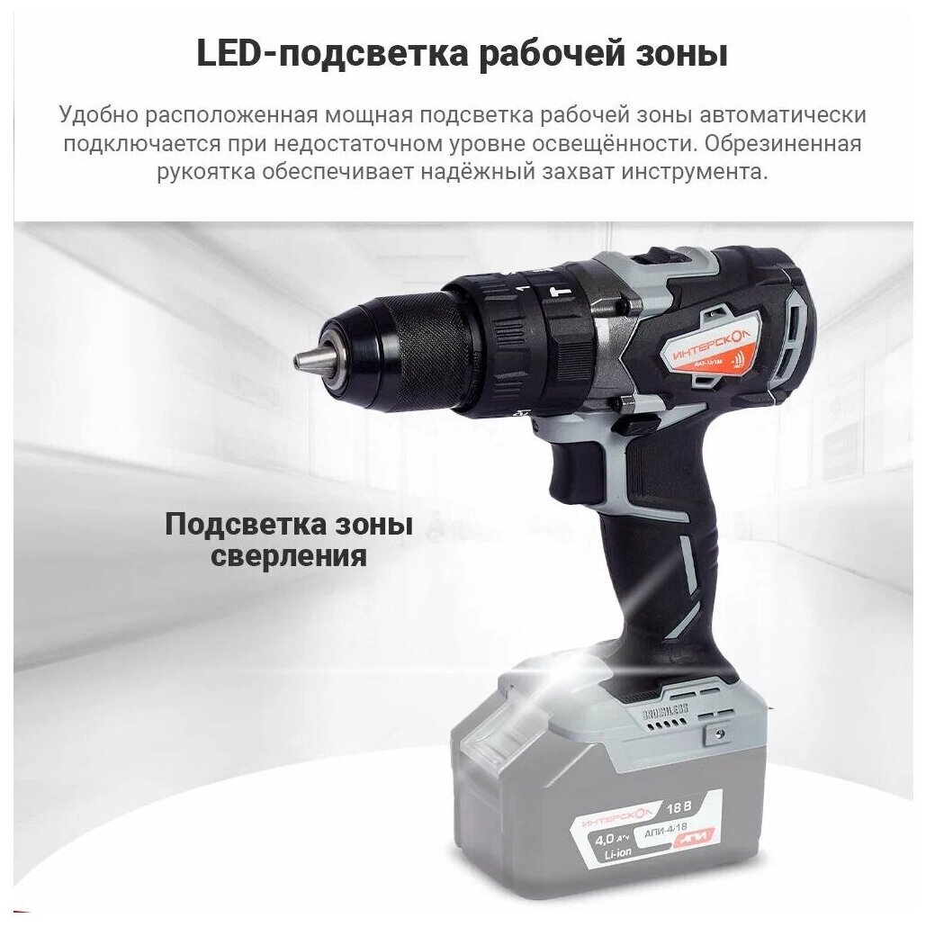 ИНТЕРСКОЛ ДАУ-13/18В бесщеточная удар. аккум. дрель-шуруп. Li-ion АПИ (кейс, без аккум. и ЗУ) 574.0.0.70