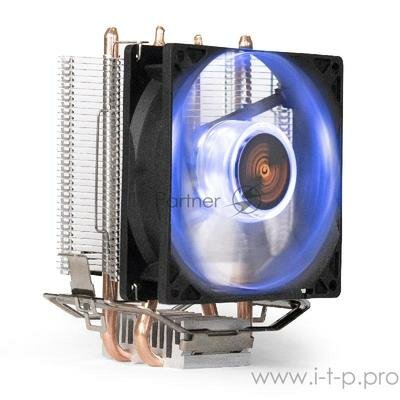 Кулер ExeGate EX286297RUS Wizard EXX200-PWM.BLUE (Al+Copper, 2 трубки, LGA775/115*/1200/AM2-AM4/FM1/FM2, 80W, 90mm, PWM, 4pin, голубая подсв, Retail)