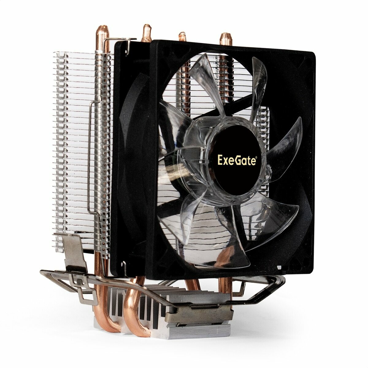 Кулер ExeGate EX286297RUS Wizard EXX200-PWM.BLUE (Al+Copper, 2 трубки, LGA775/115*/1200/AM2-AM4/FM1/FM2, 80W, 90mm, PWM, 4pin, голубая подсв, Retail)