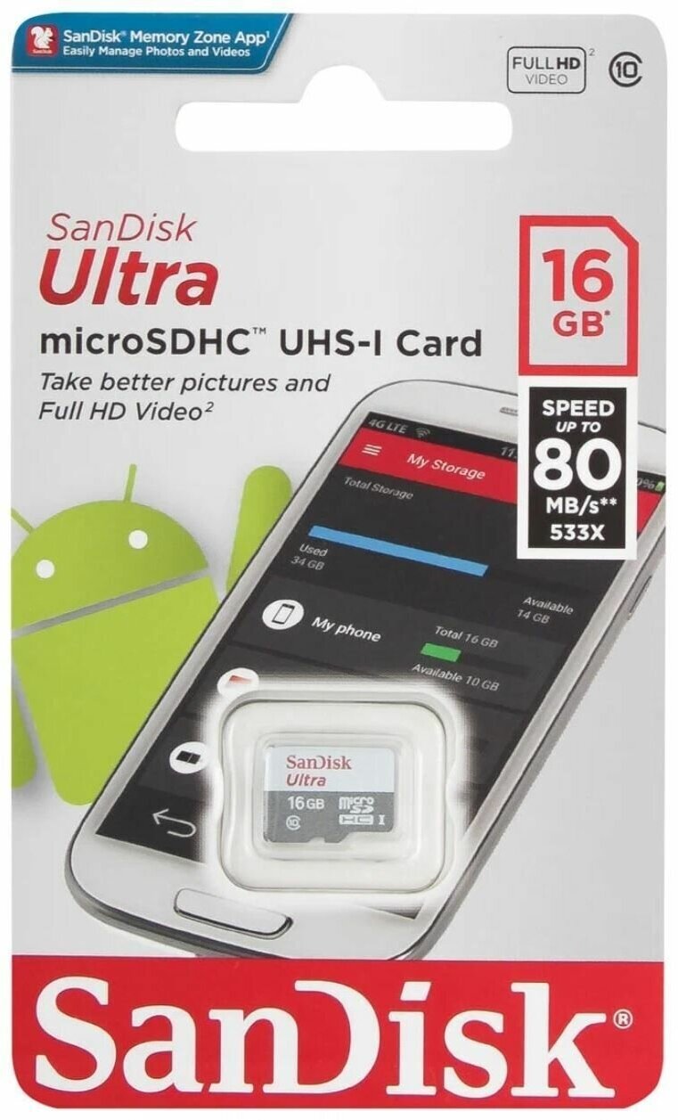 Карта памяти SanDisk Ultra microSDHC 32 ГБ Class 10, UHS-I, R 100 МБ/с