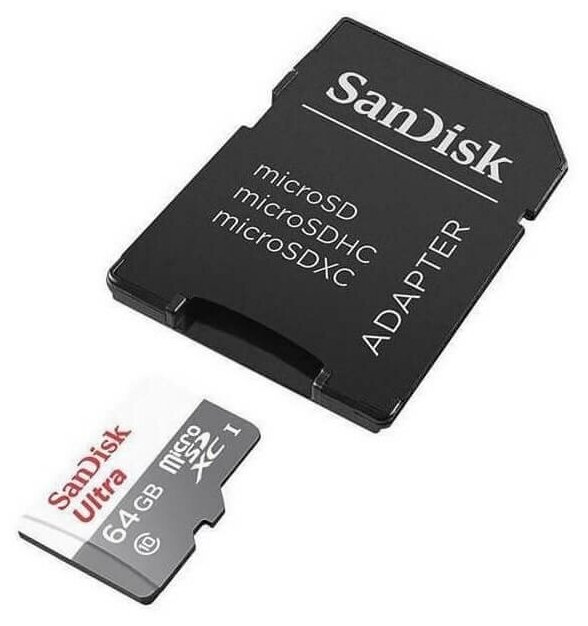 Карта памяти microSDXC SanDisk SDSQUNR-064G-GN3MA 64 Гб класс 10 Ultra UHS-I 100 Мб/с, с адаптером SD