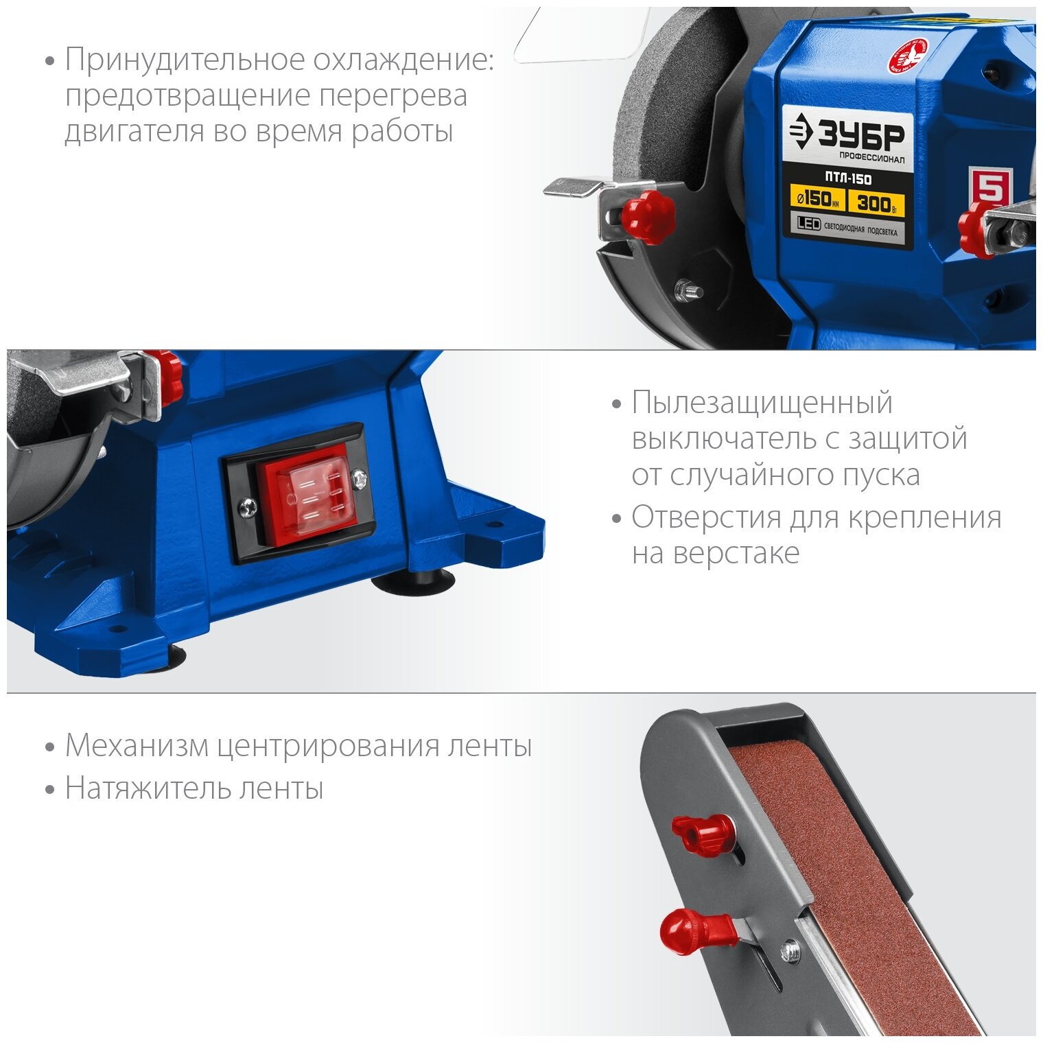 Лучшие цены. Заточной станок с шлифовальной лентой ЗУБР d 150 мм ПТЛ-150 используется для заточки и шлифовки инструмента и металлических заготовок. Устройство подходит для эксплуатации в мастерской и на небольшом производстве. Данная модель имеет большой ресурс двигателя. Отличается надежным исполнением. Технические характеристики заточного станка ЗУБР ПТЛ-150 Тип для инструмента Мощность двигателя, Вт Мощность заточного станка определяет количество потребляемой в единицу времени энергии, от которой зависит его. Магазины в вашем городе.