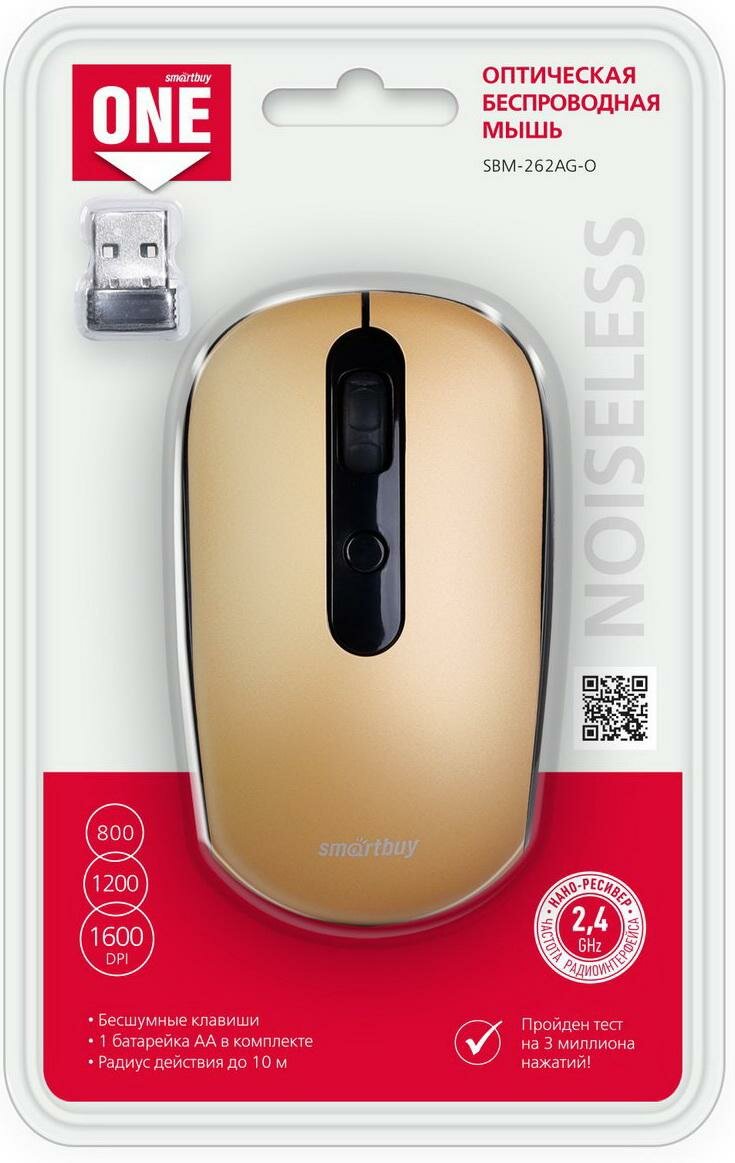 Лучшие цены. Мышь беспроводная беззвучная Smartbuy ONE 262AG бронза /40 [SBM-262AG-O. Магазины в вашем городе.
