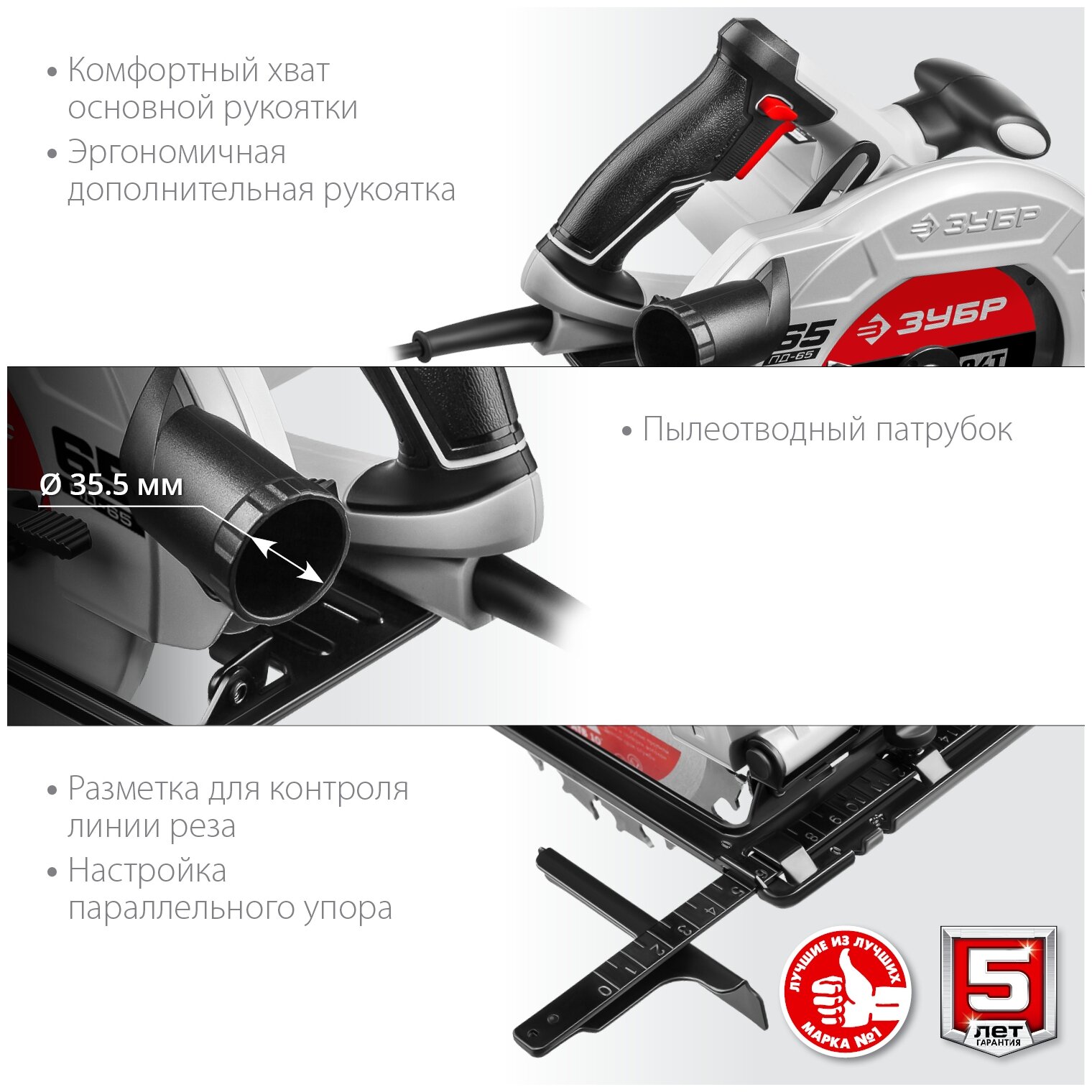 Пилы Циркулярная пила (дисковая) Зубр ПД-65 1600Вт (ручная)