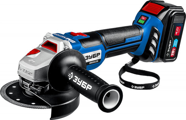 Бесщеточная Угловая шлифовальная машина (болгарка) ЗУБР Профессионал 20В 2 АКБ 4Ач AB-125-42