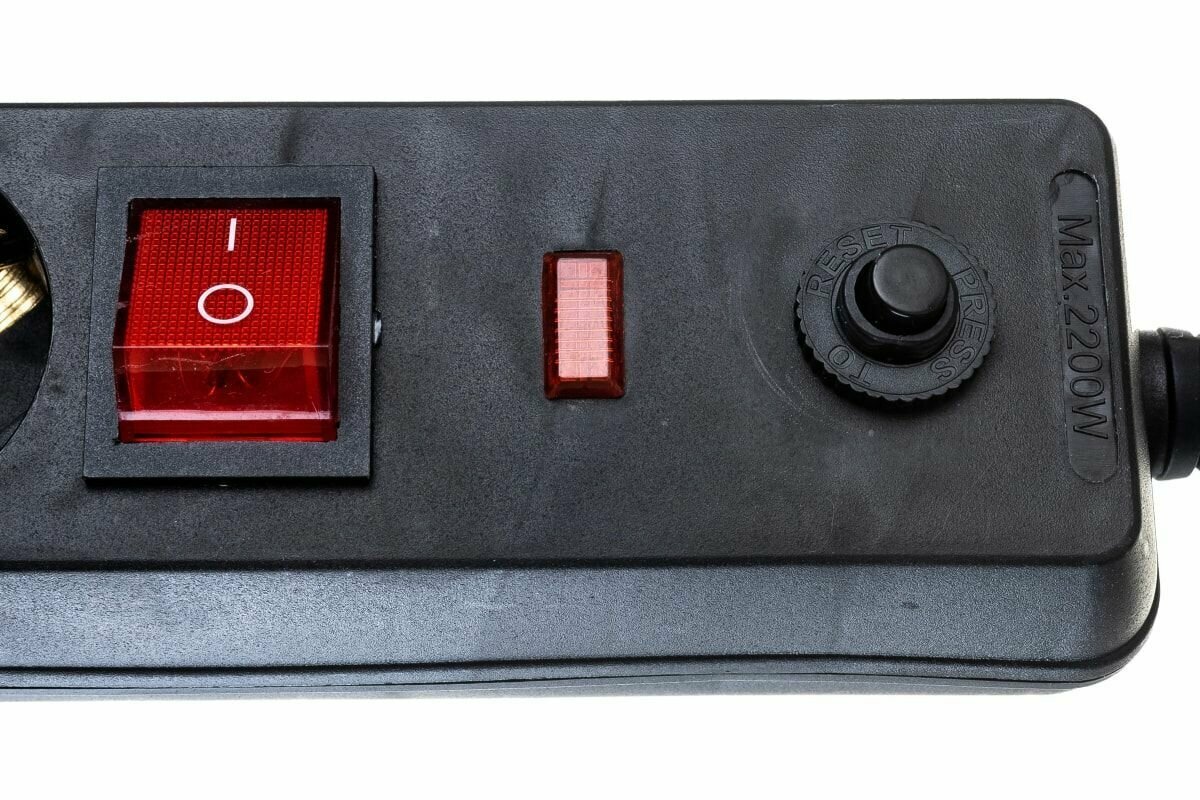 Сетевой фильтр IEK СФ-05К-выкл, 3,5 кВт, 16 А, с заземлением, с кнопкой, 5 розеток, 5 м, черный