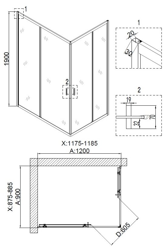 Лучшие цены. Характеристики: Коллекция: Nova Максимальная длина: 118.5 см Максимальная ширина: 88.5 см Высота: 190 см Условный размер: 120x90 Форма: прямоугольная Регулировка размеров: да Диапазон длины: 117,5-118,5 см Размер регулировки длины: 1 см Диапазон ширины: 87,5-88,5 Размер регулировки ширины: 1 см Диапазон регулировки: от 1 до 2 см Материал профиля: алюминий Цвет профиля: хром Материал стекол: стекло Рисунок стекол: прозрачные Покрытие анти-капля (антикальцит). Магазины в вашем городе.