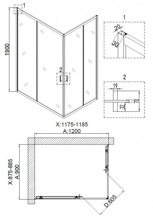Лучшие цены. Размеры: 1200 х 900 х 1900 мм Стекло: закаленное, толщина 6 мм Цвет профиля: хром Особенности: универсальная ориентация профиль из алюминия поддон не идет в комплекте Страна бренда: Китай. Магазины в вашем городе.