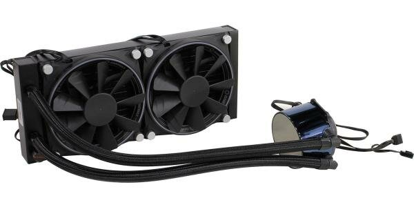 Лучшие цены. Тип охлаждения: жидкостная; Назначение: для процессоров, универсальный; Совместимые разъёмы CPU: Intel LGA 1155, Intel LGA 1156, AMD AM2, AMD AM2+, AMD AM3, AMD AM3+, AMD FM1, Intel LGA 2011, AMD FM2, Intel LGA 1150, AMD FM2+, Intel LGA 1151, Intel LGA 2011-3, AMD AM4, Intel LGA 2066; Материал изготовления: Алюминий, Медь, Пластик; Тепловые трубки: нет; Количество вентиляторов: 2; Уровень шума: 28.8 дБа; Воздушный поток: н/д; Скорость вращения вентилятора: н/д; Питание: От 3-pin; Подсветка: RGB. Магазины в вашем городе.